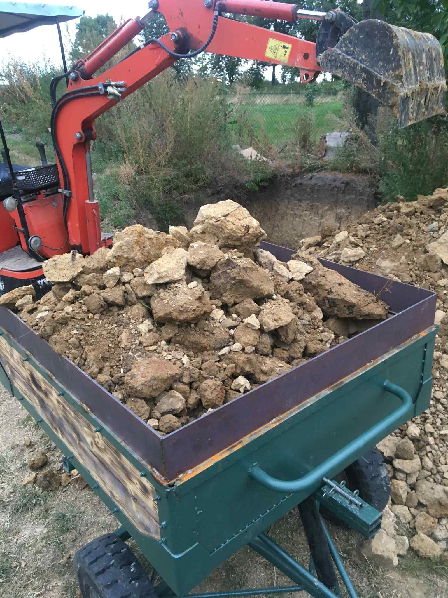 V rámci výkopu na zahradách, kde je málo prostoru, jsme doplnily naše služby o přesunutí zeminy od výkopu sklopnou vlečkou.